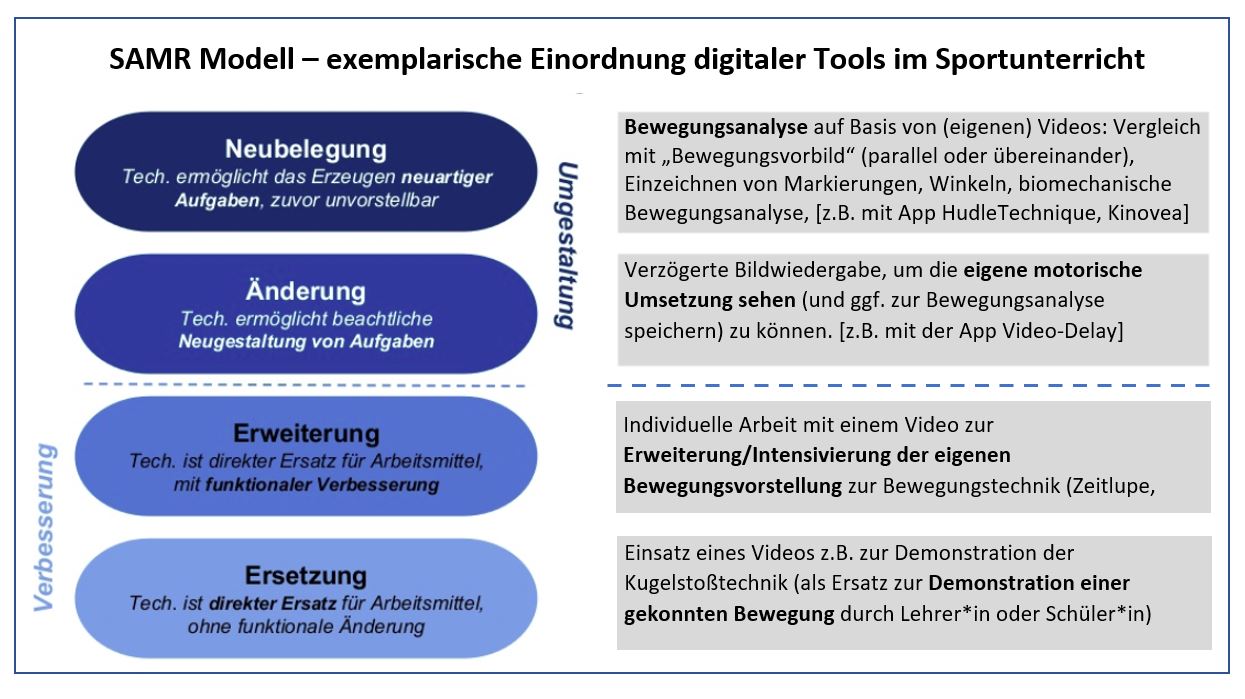 Am Beispiel des Erlernens einer neuen Bewegungsfertigkeit kann der lernförderliche Einsatz digitaler Hilfsmittel im Sportunterricht wie folgt eingeordnet werden: