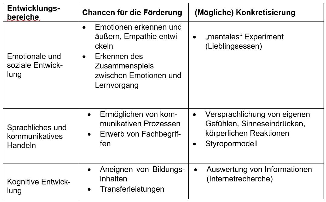 In diesem Unterrichtssetting können auf der Grundlage der individuellen Lern- und Entwicklungsplanung schwerpunktmäßig folgende Entwicklungschancen zum Tragen kommen