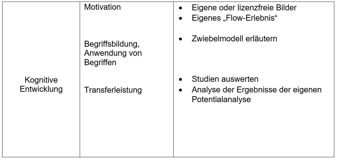 Diese Spalte des Lernstrukturgitters bietet Möglichkeiten, die neuroaffektive Persönlichkeitsentwicklung zu thematisieren.