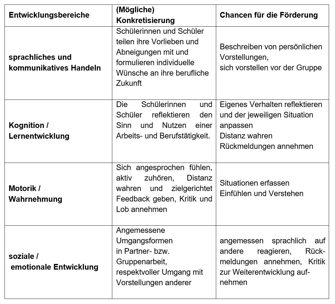 In diesem Modul erhalten die Schülerinnen und Schüler Gelegenheit, ihre eigenen Stärken, Fähigkeiten und Talente in den Blick zu nehmen. Davon ausgehend können die eigenen Wünsche und Vorstellungen der beruflichen und ggf. auch der persönlichen Zukunft entwickelt werden. Da Selbst- und Fremdwahrnehmungen dabei eine besondere Rolle spielen, setzen sich die Schülerinnen und Schülern mit diesen beiden Perspektiven auseinander. Auch das Zusammenarbeiten mit Mitschülerinnen und Mitschülern, die dazu notwendigen kommunikativen Strukturen und persönlichen Fähigkeiten oder der Umgang mit Kritik sollte thematisiert werden. Exemplarisch sollen in diesem Vorhaben Fragen nach den individuellen Vorlieben, Stärken und Schwächen sowie den Wünschen an eine konkrete Arbeitsplatzgestaltung nachgegangen werden. Dabei eignet sich dieses Modul in besonderer Weise alle Schülerinnen und Schüler in den Blick zu nehmen.