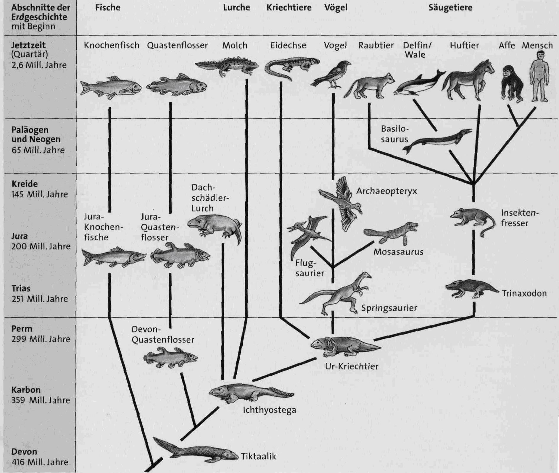 1 | Die Entwicklung der Wirbeltiere wird in dem abgebildeten Stammbaum dargestellt. |
